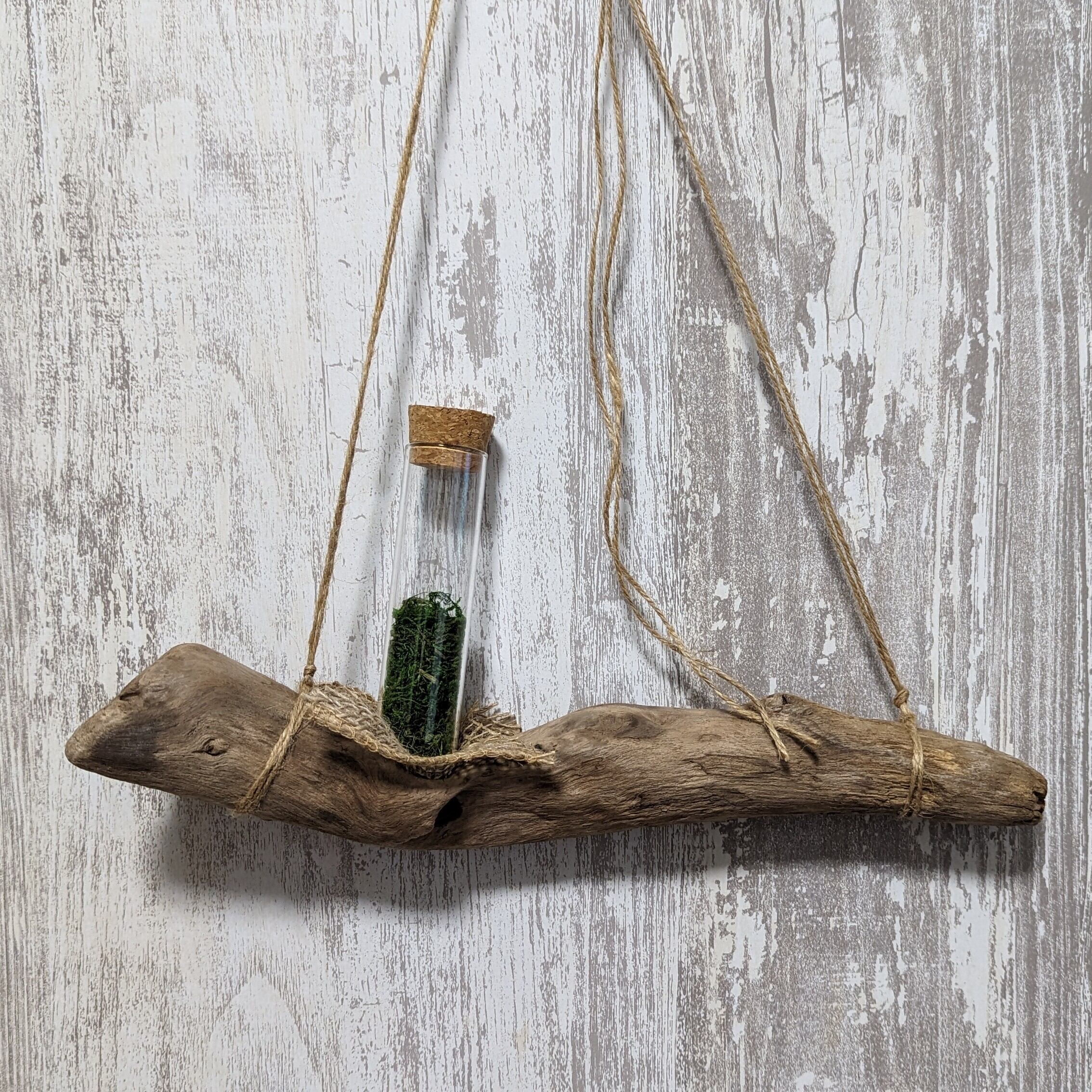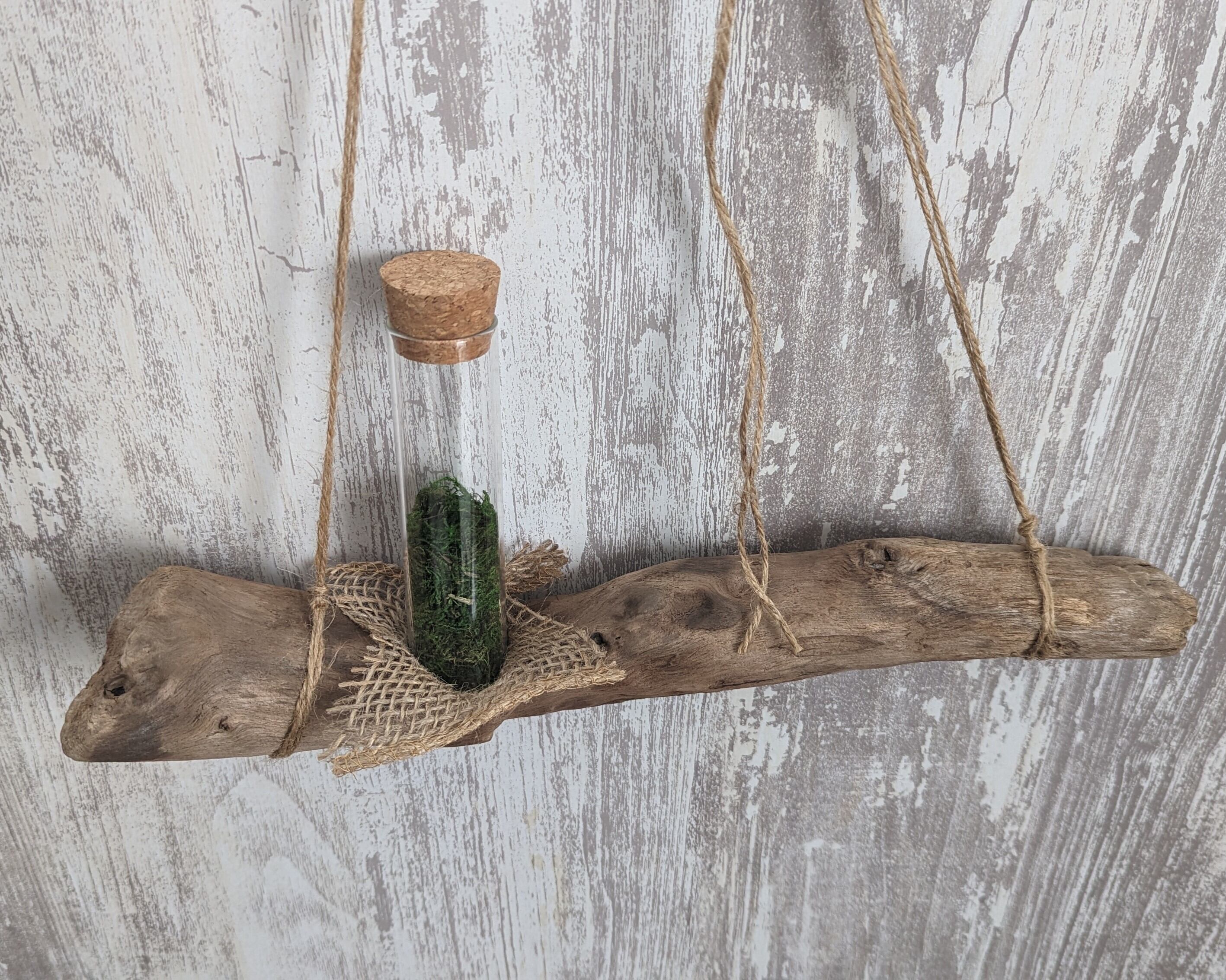 こちらの流木は、Hangingタイプとなっております。ガラス管にはコルク栓がついておりますが、コルク栓をとってエアプランツを入れていただくだけで、オシャレな空間に早変わり☆ ガラス管は取り外しが可能となっておりますので、中のコケを小粒のシーグラスなどに変えてお使いいただいても、可愛いと思います。あなたのセンスとお好みでお使いいただけたらと思います。付属品としてはガラス管とガラス管の中のコケは付属しております。垂れ下がっているいる麻紐は短くカットしてお使いいただいても、良いかと思います。