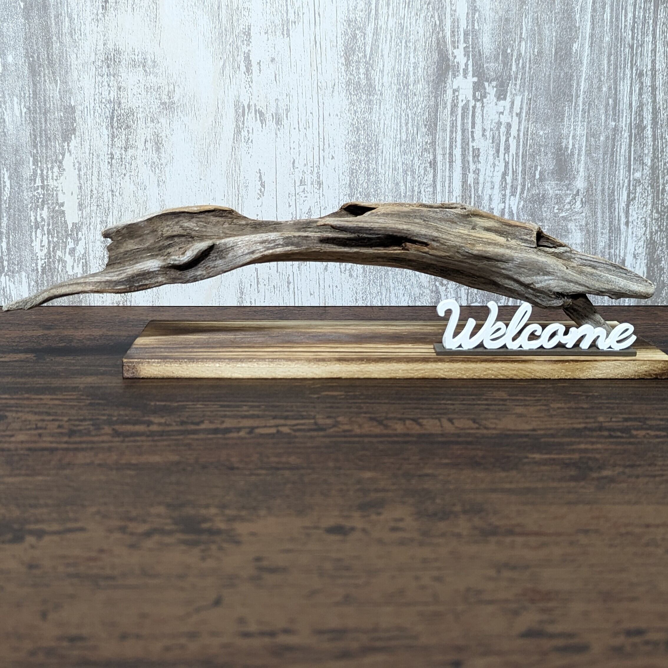 この商品は流木の形をいかして、浮かしたようなOrnament に仕上げてみました。かっこよくも見えてwelcomeの置物もありますので、玄関やリビングに飾ってみませんか?1つあるだけで存在感のある流木ですよ。お好みのエアプランツをプラスしてオシャレな空間へ変身。エアプランツは写真撮影のため付属されておりませんのでご了承ください。
