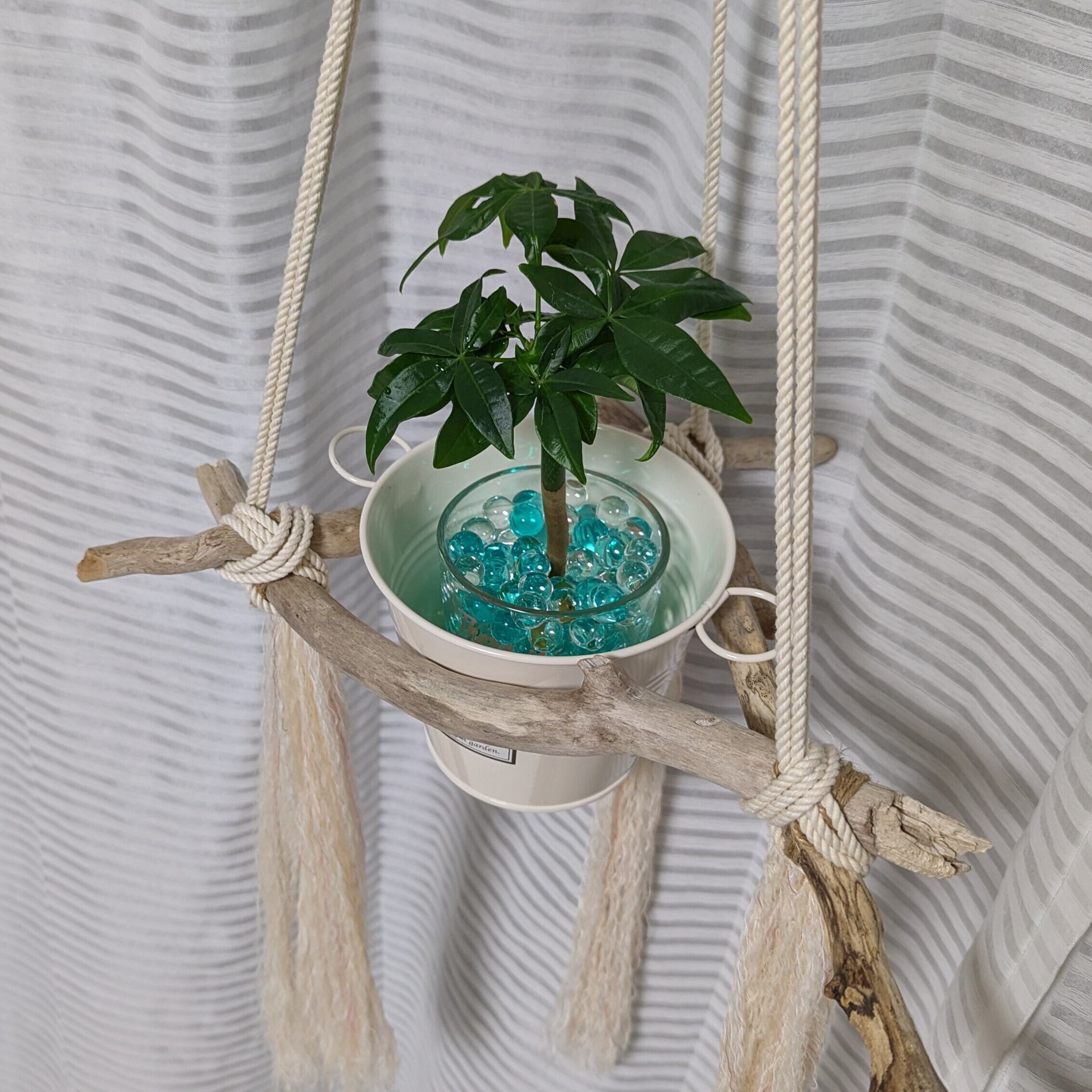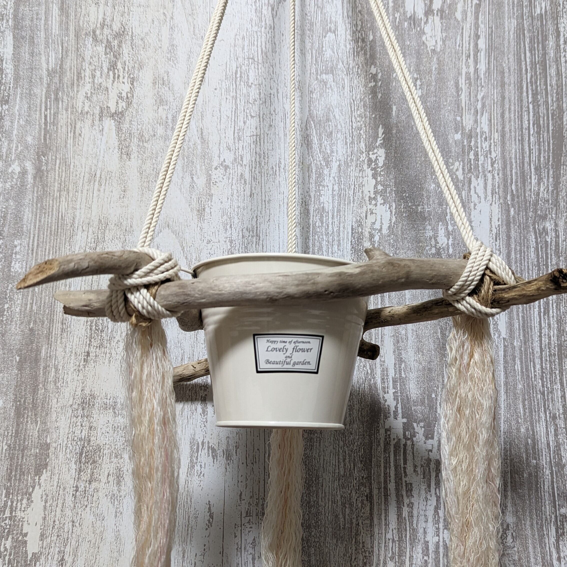 こちらの商品は、鉢植えなどを入れていただける流木のHangingとなっております。お好きな植物を入れていただいて鉢カバーがわりに使っていただいても良いのではないでしょうか?バケツタイプを付属しておりますが、鉢などを入れる場合は鉢の受け皿などをお使いください。そのままですと、鉢の底から出てくる水でバケツが錆びる場合がありますので、ご注意ください。撮影の為の植物となっておりますので、植物は付属されておりませんのでご了承ください。