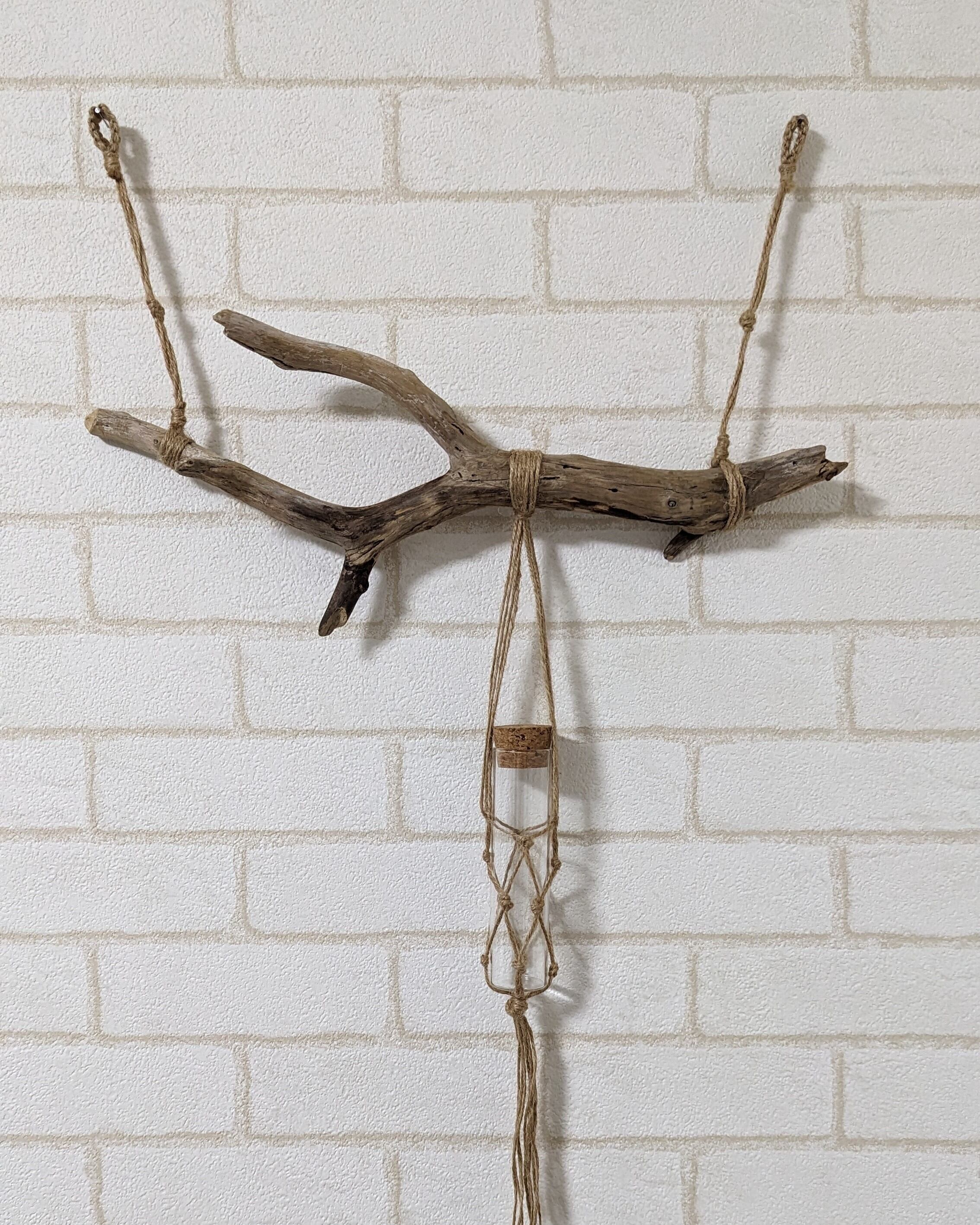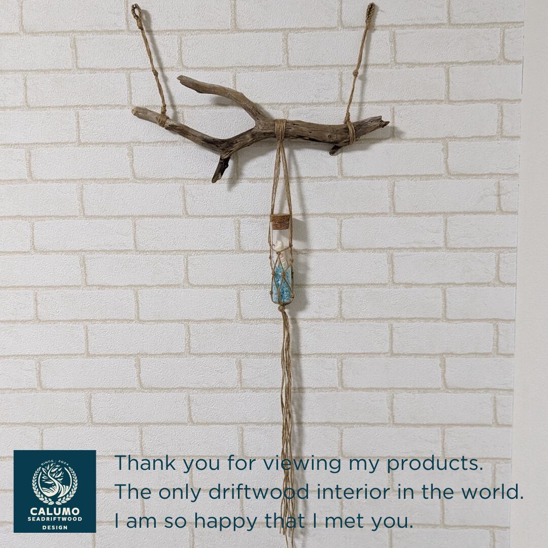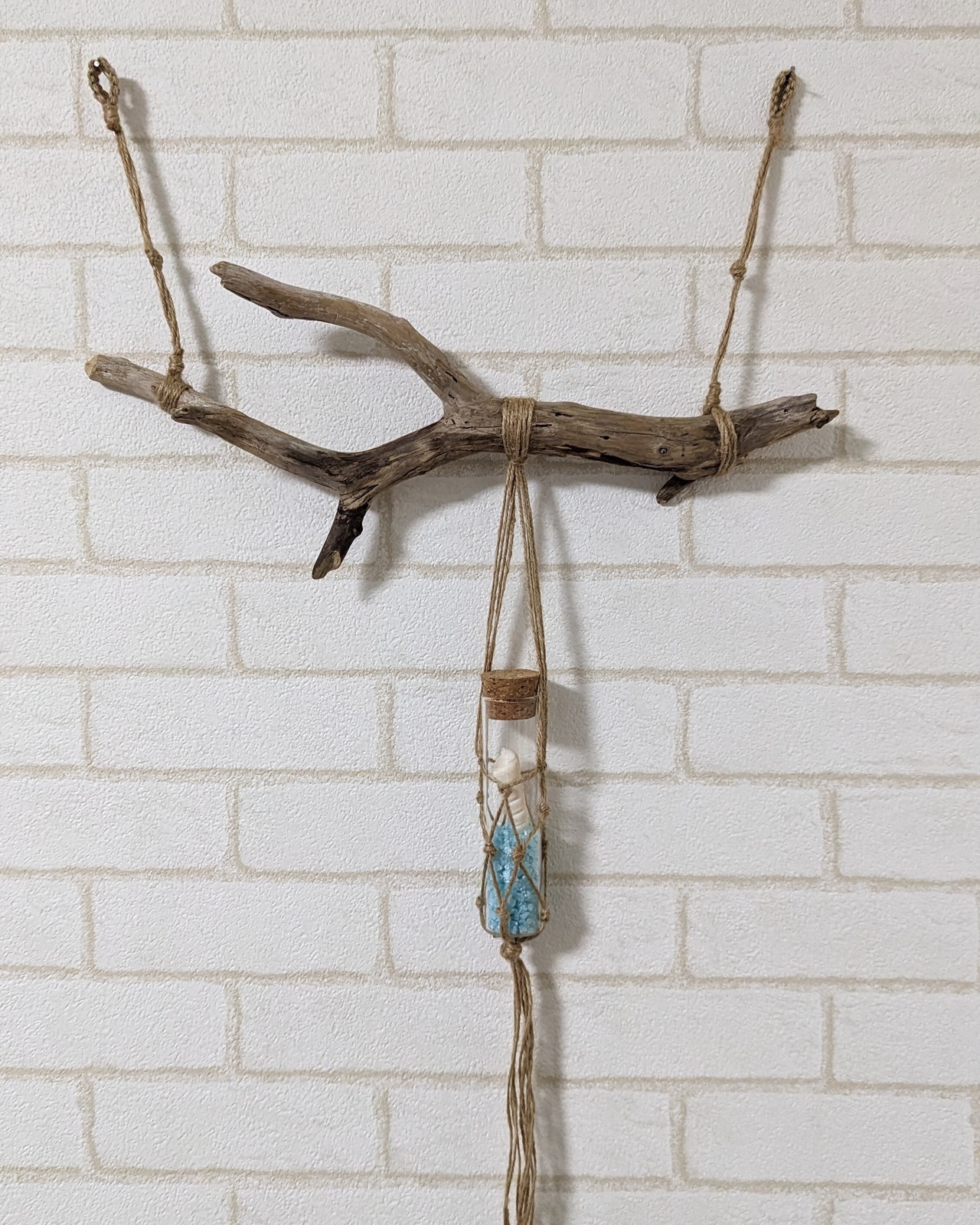 こちらの流木は、Hangingタイプとなっております。ガラス管にはコルク栓がついておりますが、コルク栓をとってエアプランツを入れていただくだけで、オシャレな空間に早変わり☆ ガラス管は取り外しが可能となっておりますので、中の小粒のシーグラスをコケなどに変えてお使いいただいても、可愛いと思います。あなたのセンスとお好みでお使いいただけたらと思います。ガラス管は付属しております。垂れ下がっているいる麻紐は短くカットしてお使いいただいても、良いかと思います。